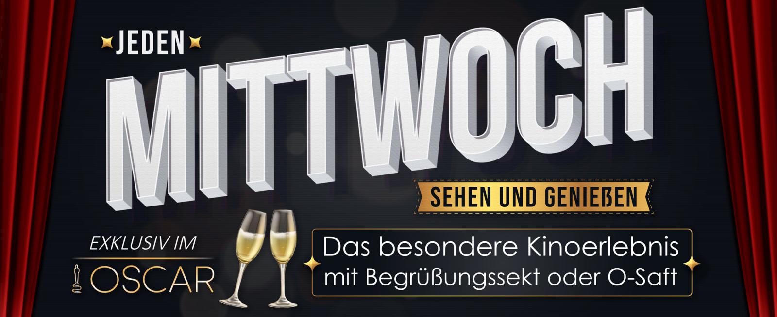 Das besondere Kinoerlebnis an jedem Mittwoch! Mit Begrüßungssekt oder O-Saft!